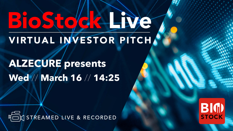 AlzeCure Pharma AB (publ) (FN STO: ALZCUR), ett läkemedelsbolag som utvecklar en bred portfölj av småmolekulära produktkandidater för sjukdomar som drabbar det centrala nervsystemet, med projekt inom både Alzheimers sjukdom och smärta, meddelar idag att bolaget medverkar på BioStock Investor Meeting den 16 mars kl 14:25 där VD Martin Jönsson kommer att presentera den senaste utvecklingen och planerna i bolaget, inklusive om den pågående företrädesemissionen. Presentationen efterföljs av en moderatorledd frågestund.