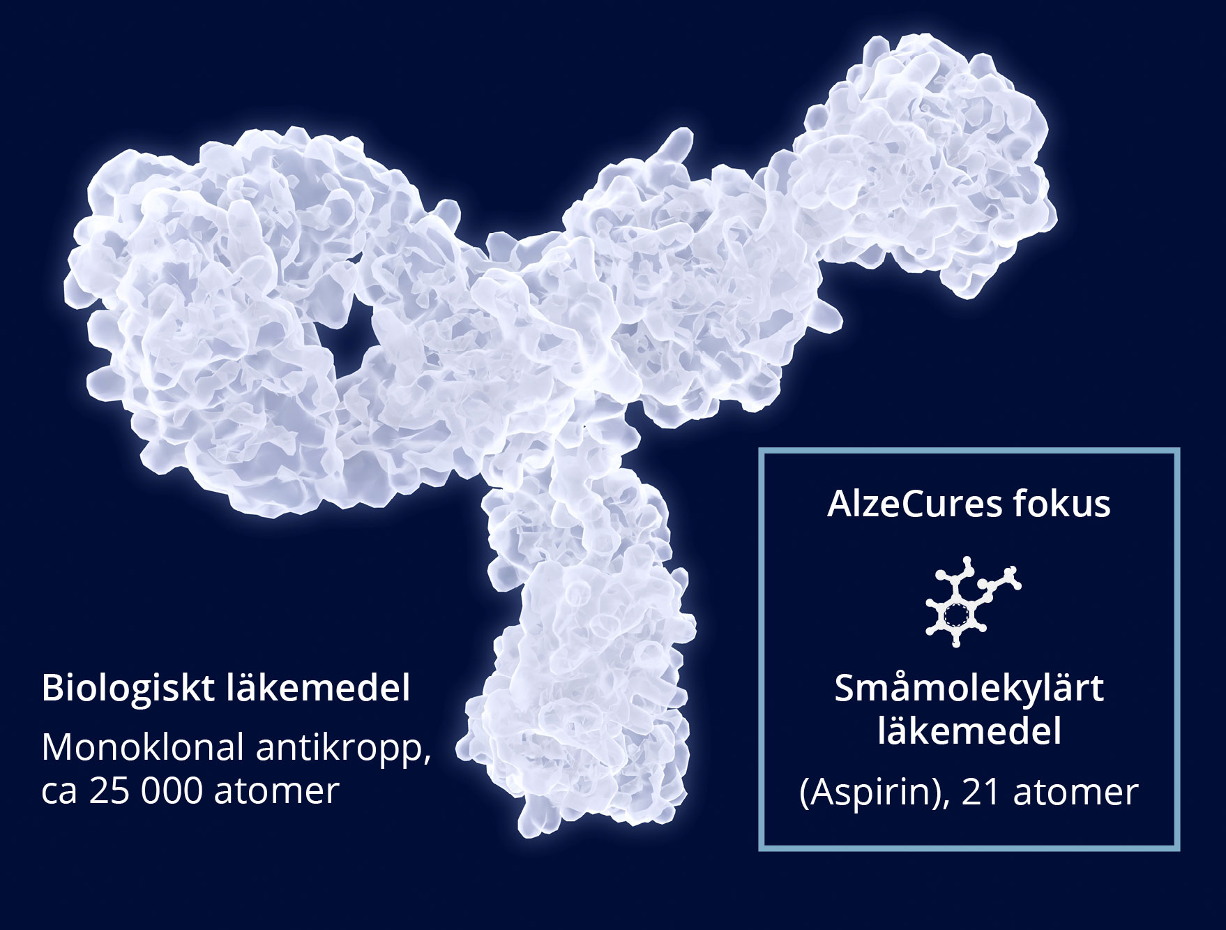 AlzeCures läkemedelskandidater baseras på småmolekyler, som har flera fördelar gentemot biologiska läkemedel: